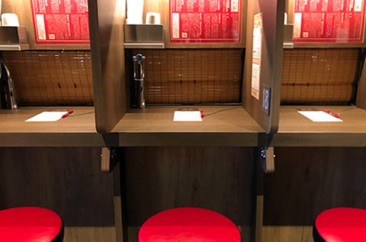 こちらの画像は、「味集中カウンター」と呼ばれる 一人ずつ仕切られた席 です。